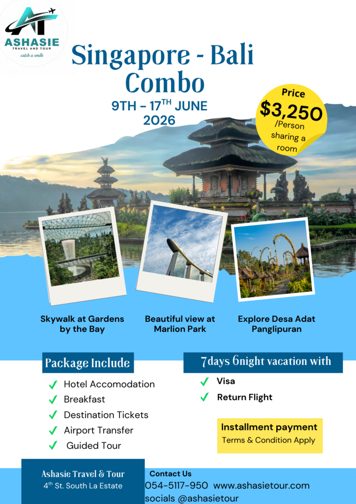 Singapore & Bali Combo 8 Days 9-17 June 2026 $3250 per person sharing Includes hotel, return flight, tours and visa. Cost Singapore & Bali Combo Includes Hotel, Breakfast, Return flight, Tours and visa. Date & Time Package Type Back Continue You can send your enquiry via the form below. Trip name: * Singapore & Bali Combo Your name: * Your email: * Country * Choose a country*AfghanistanĂ…land IslandsAlbaniaAlgeriaAmerican SamoaAndorraAngolaAnguillaAntarcticaAntigua and BarbudaArgentinaArmeniaArubaAustraliaAustriaAzerbaijanBahamasBahrainBangladeshBarbadosBelarusBelgiumBelauBelizeBeninBermudaBhutanBoliviaBonaire, Saint Eustatius and SabaBosnia and HerzegovinaBotswanaBouvet IslandBrazilBritish Indian Ocean TerritoryBruneiBulgariaBurkina FasoBurundiCambodiaCameroonCanadaCape VerdeCayman IslandsCentral African RepublicChadChileChinaChristmas IslandCocos (Keeling) IslandsColombiaComorosCongo (Brazzaville)Congo (Kinshasa)Cook IslandsCosta RicaCroatiaCubaCuraçaoCyprusCzech RepublicDenmarkDjiboutiDominicaDominican RepublicEcuadorEgyptEl SalvadorEquatorial GuineaEritreaEstoniaEthiopiaFalkland IslandsFaroe IslandsFijiFinlandFranceFrench GuianaFrench PolynesiaFrench Southern TerritoriesGabonGambiaGeorgiaGermanyGhanaGibraltarGreeceGreenlandGrenadaGuadeloupeGuamGuatemalaGuernseyGuineaGuinea-BissauGuyanaHaitiHeard Island and McDonald IslandsHondurasHong KongHungaryIcelandIndiaIndonesiaIranIraqIrelandIsle of ManIsraelItalyIvory CoastJamaicaJapanJerseyJordanKazakhstanKenyaKiribatiKuwaitKyrgyzstanLaosLatviaLebanonLesothoLiberiaLibyaLiechtensteinLithuaniaLuxembourgMacaoNorth MacedoniaMadagascarMalawiMalaysiaMaldivesMaliMaltaMarshall IslandsMartiniqueMauritaniaMauritiusMayotteMexicoMicronesiaMoldovaMonacoMongoliaMontenegroMontserratMoroccoMozambiqueMyanmarNamibiaNauruNepalNetherlandsNew CaledoniaNew ZealandNicaraguaNigerNigeriaNiueNorfolk IslandNorthern Mariana IslandsNorth KoreaNorwayOmanPakistanPalestinian TerritoryPanamaPapua New GuineaParaguayPeruPhilippinesPitcairnPolandPortugalPuerto RicoQatarReunionRomaniaRussiaRwandaSaint BarthélemySaint HelenaSaint Kitts and NevisSaint LuciaSaint Martin (French part)Saint Martin (Dutch part)Saint Pierre and MiquelonSaint Vincent and the GrenadinesSan MarinoSão Tomé and PríncipeSaudi ArabiaSenegalSerbiaSeychellesSierra LeoneSingaporeSlovakiaSloveniaSolomon IslandsSomaliaSouth AfricaSouth Georgia/Sandwich IslandsSouth KoreaSouth SudanSpainSri LankaSudanSurinameSvalbard and Jan MayenSwazilandSwedenSwitzerlandSyriaTaiwanTajikistanTanzaniaThailandTimor-LesteTogoTokelauTongaTrinidad and TobagoTunisiaTurkeyTurkmenistanTurks and Caicos IslandsTuvaluUgandaUkraineUnited Arab EmiratesUnited Kingdom (UK)United States (US)United States (US) Minor Outlying IslandsUruguayUzbekistanVanuatuVaticanVenezuelaVietnamVirgin Islands (British)Virgin Islands (US)Wallis and FutunaWestern SaharaSamoaYemenZambiaZimbabwe Contact number: * No. of Adults * No. of children Enquiry Subject: * Your Message * Show Prices From $ 3,250 / Adult Check Availability